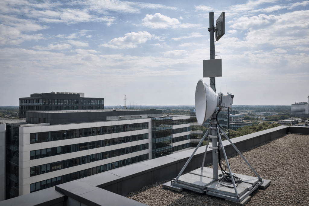 Een straalverbinding werkt via een draadloze verbinding tussen twee punten. Die is onafhankelijk van de ondergrondse infrastructuur. Dat vergroot de kans dat je verbinding actief blijft bij graafschade of kabelbreuk.
